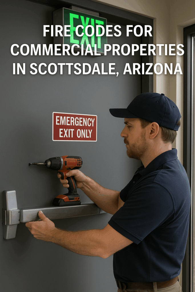 Fire safety compliance isn’t just about avoiding fines—it’s about protecting lives, property, and keeping your business running without interruptions. In Scottsdale, fire codes are carefully enforced to make sure commercial properties provide safe exits, alarms, sprinklers, and other life-saving features. This article highlights the key standards you need to know, including where push bar installation in Scottsdale fits in, and why working with the top locksmith in Scottsdale, AZ, Diamondback Locksmith makes sense.